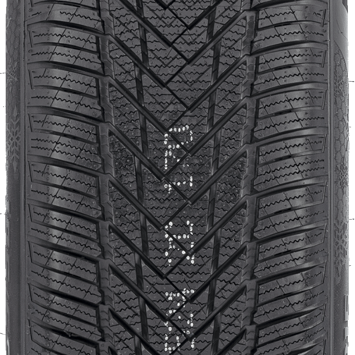 Los surcos en zigzag de la banda de rodadura incrementan la estabilidad al circular por una carretera nevada y también mejoran la tracción del neumático, lo que se traduce en una reducción de la distancia de frenado. Su complemento son unas láminas gruesas y finas colocadas alternativamente en el hombro del neumático, que influyen adicionalmente en la mejora del contacto del neumático con el pavimento. Un elemento más de la trabajada forma de la banda de rodadura es el compuesto de goma empleado, que mantiene la rigidez adecuada incluso durante las heladas intensas. Así conseguimos un neumático que ofrece las debidas propiedades de circulación y una mejora de la calidad de conducción en esta desfavorable estación del año. Merece la pena recordar que el neumático destaca por un funcionamiento relativamente silencioso.