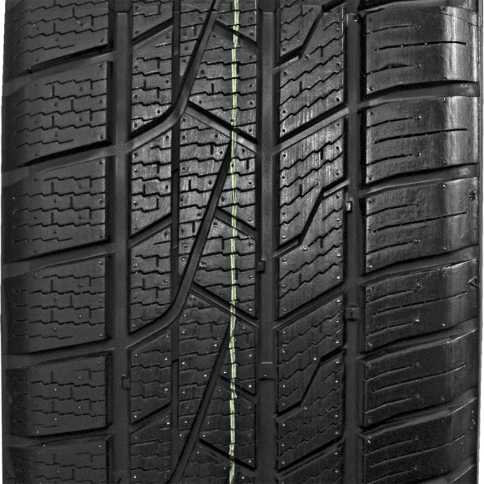 La banda de rodadura asimétrica es una garantía de estabilidad en todas las condiciones meteorológicas. Las profundas incisiones longitudinales evacuan eficazmente el agua de debajo del neumático y y los sólidos bloques de estructura en cruz se clavan perfectamente en la nieve.